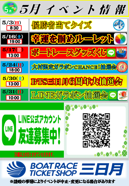 BTS三日月「今月のイベントカレンダー」のお知らせ!!
